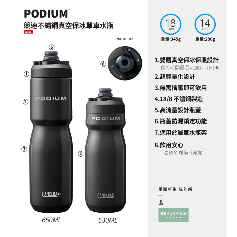 【CAMELBAK】650ml Podium 競速真空保冰單車水瓶 曜石黑( CB2965001065 )