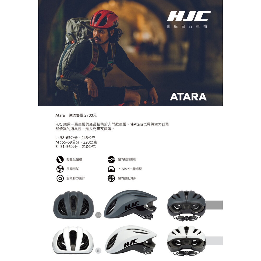 其帽型也具備空氣力學設計,而且配戴舒適,Atara 是您進入 HJC 世界的入門首選