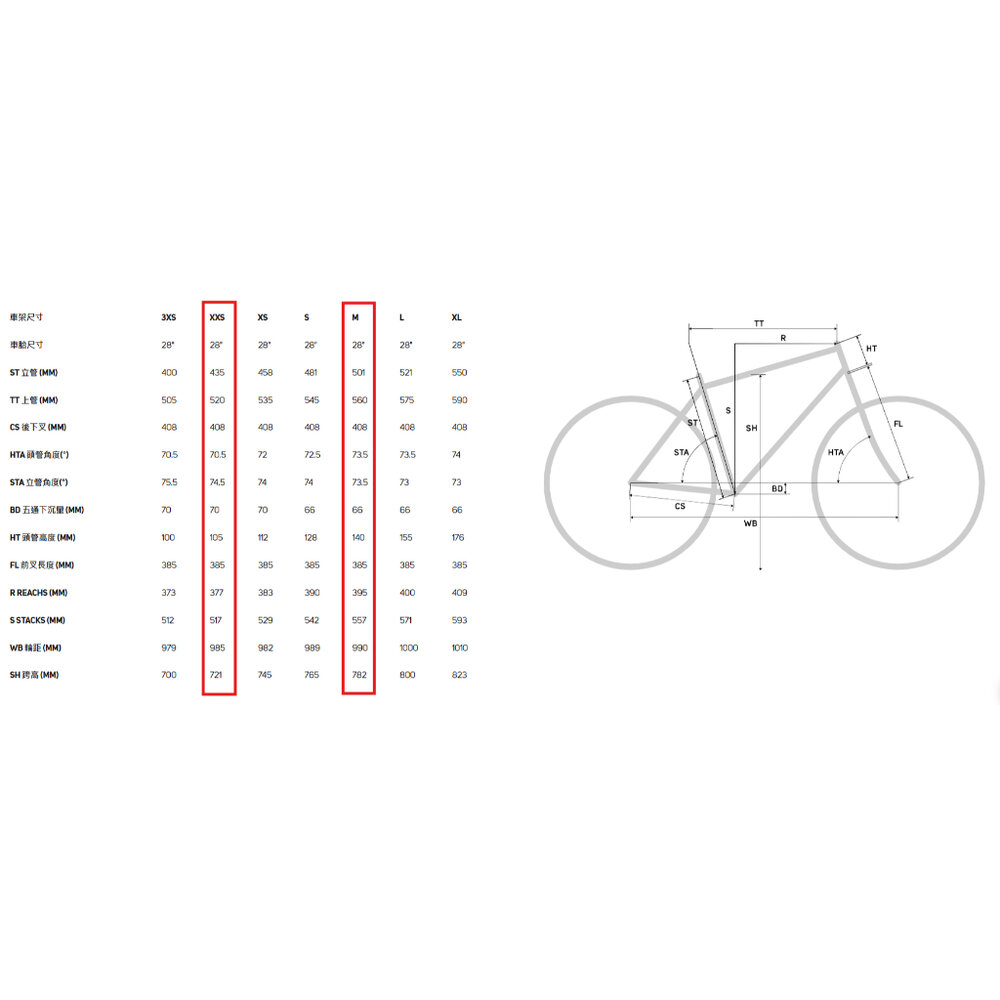 超輕量CF5碳纖維車體(尺寸M,約822g);競賽級的騎乘幾何設定(同REACTO)