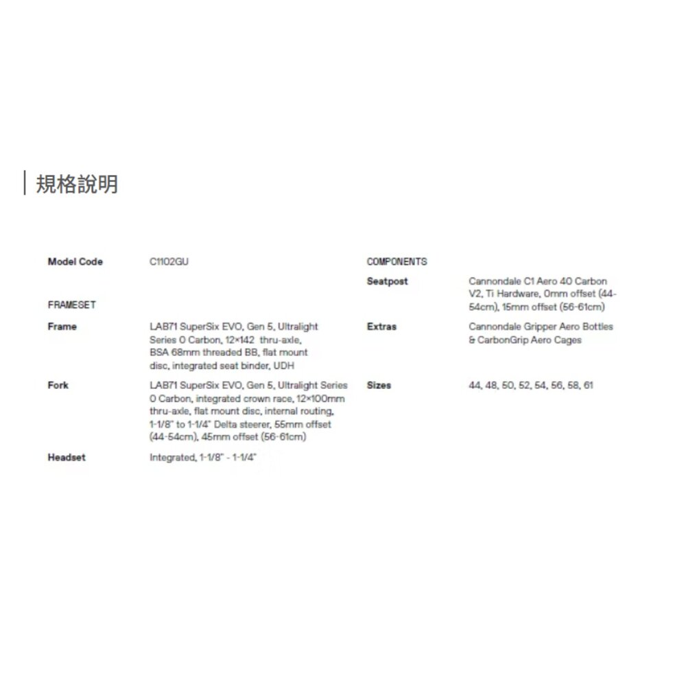 搭配有 Cannondale 史以來最輕的碳纖維前叉-392g