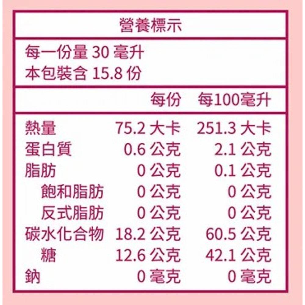 4.食用方法:每日建議兩次,每次30ml;建議稀釋比例1:5~1:10;可依個人喜好搭配水、果汁、氣泡水或運動飲品混合飲用