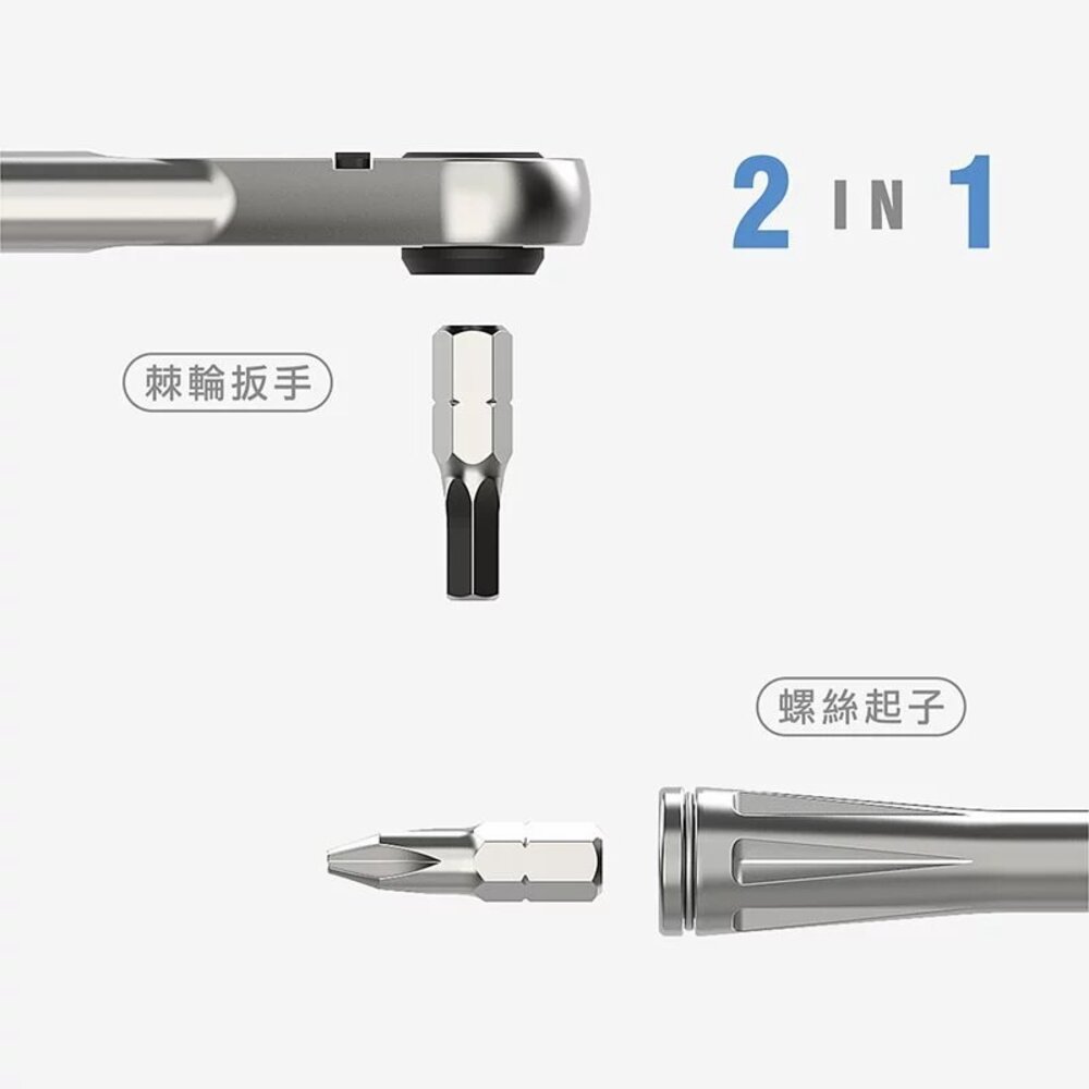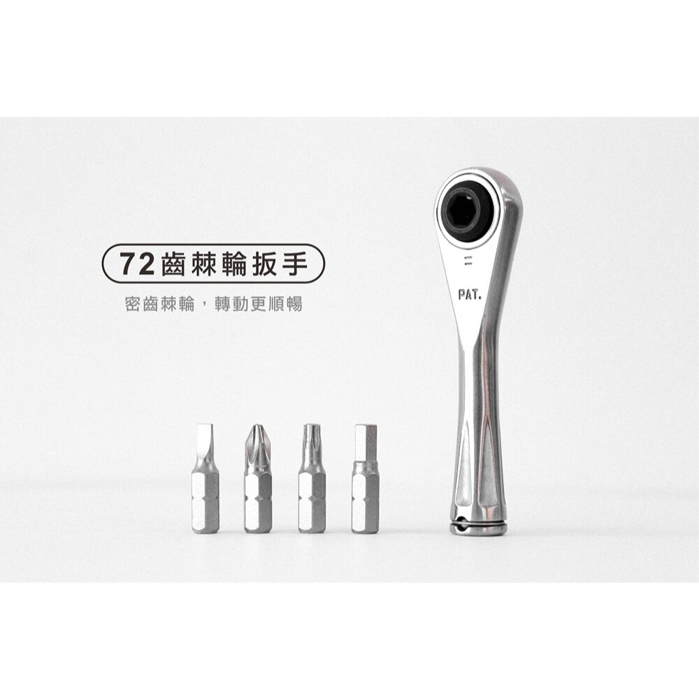 產品內容 : 72齒雙用棘輪扳手 / 強化起子頭 x14 六角起子頭 - 2 / 2.5 / 3 / 4 / 5 / 6 / 8 mm 星型起子頭 - T10 / T15 / T20 / T25 十字起子頭 - PH1 / PH2 一字起子頭 - SL4