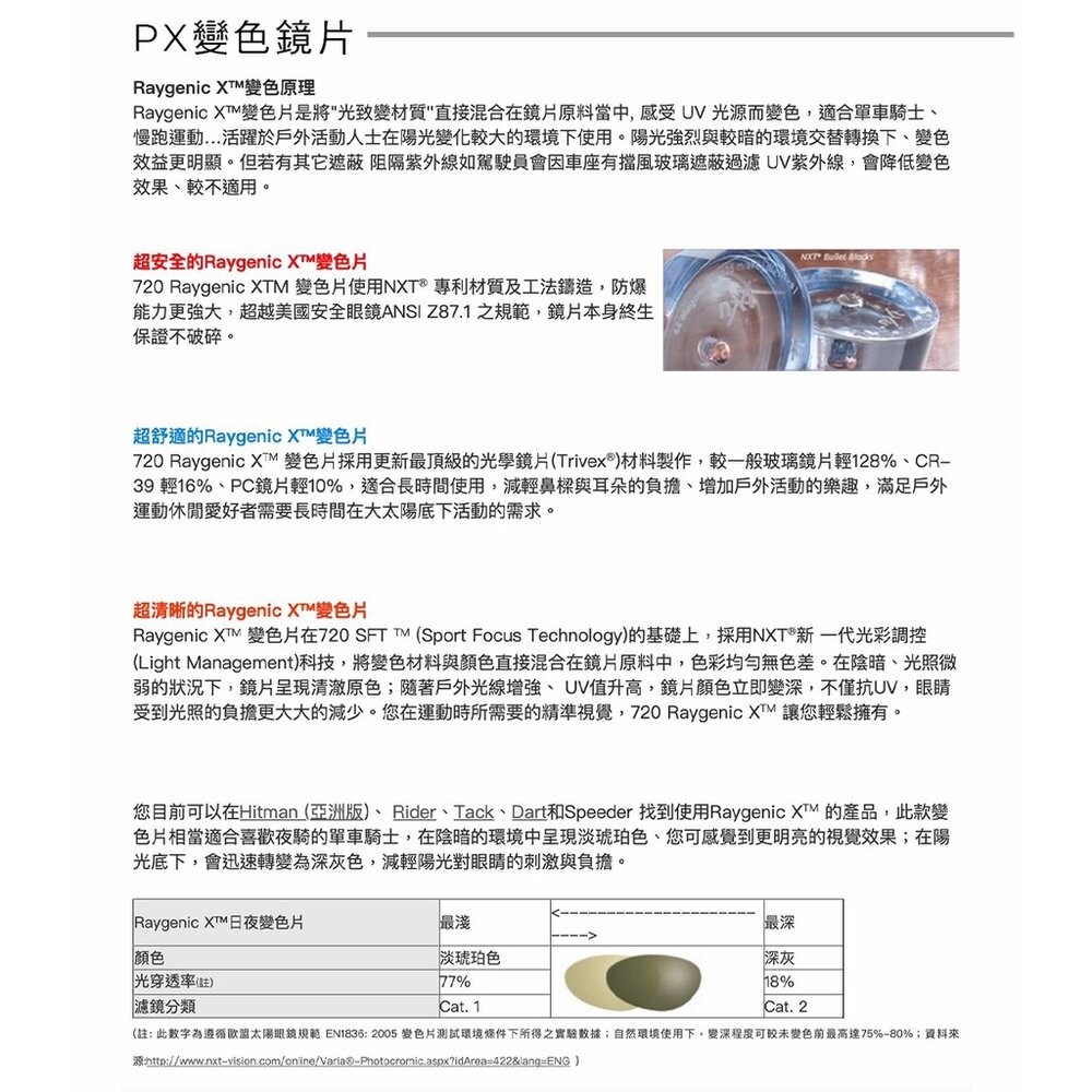Raygenic X 變色鏡片,提供100%抗UV、耐撞擊、及日夜使用需求。也適合長時間、長距離賽事配戴,一鏡到底。