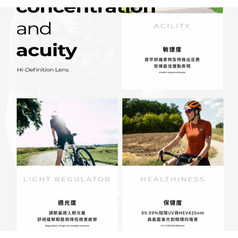 Kamikaze系列專為單車騎士設計,無論是衝刺在山巔還是穿梭於城市街道,EasySight 柱面大鏡面運動太陽眼鏡讓每位單車騎士盡享無與倫比的清晰視野。輕量化與流線造型完美貼合臉部,兼顧舒適與穩定,即使長時間騎行也毫無負擔。更有頂級抗UV保護,風雨無阻,從容駕馭每一公里。戴上它,開啟視野新境界,感受速度與自由的極致融合!