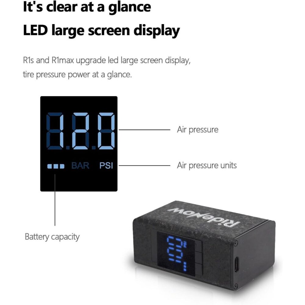 rindnow R1S 迷你充氣機具有清晰的 LED 大螢幕顯示,確保易於閱讀和監測輪胎壓力。
