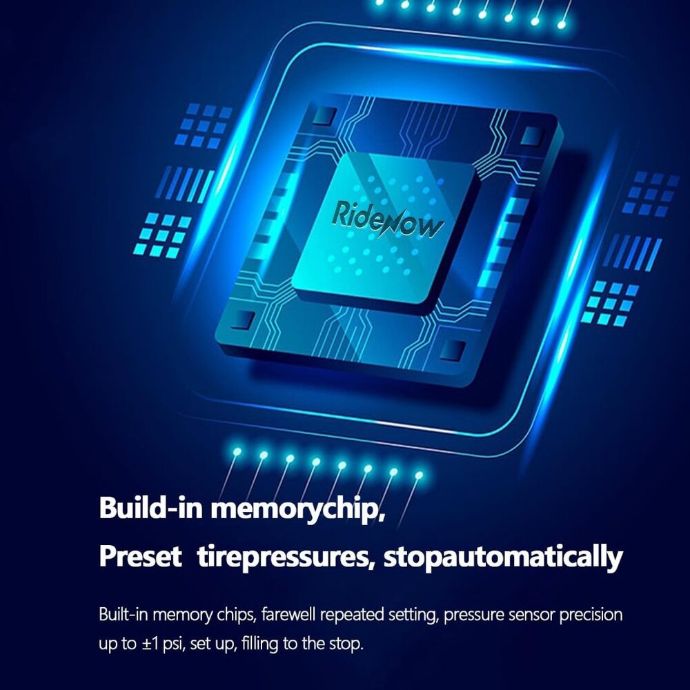 使用自動停止功能輕鬆預設輪胎壓力,壓力感測器準確度為 ±1 PSI,確保精確輕鬆充氣。